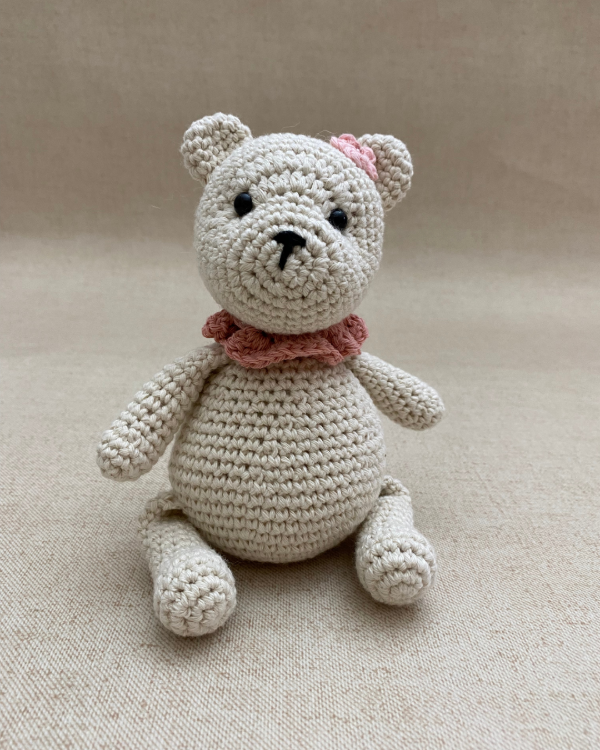 Mide aproximadamente 22cm y está confeccionada con hilo 100% algodón.
